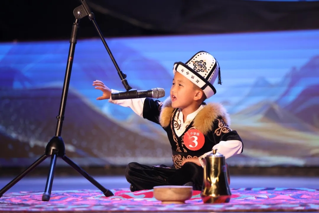 来自克州和和田地区的16名从初赛中脱颖而出的优秀选手齐聚一堂,生动演绎《玛纳斯》史诗这一中华民族的文化瑰宝。选手们身着传统民族服饰,时而用雄浑的语调演绎《玛纳斯》经典片段,再现英雄史诗的磅礴气势;时而用稚嫩的声音融入库木兹等特色乐器,将古老故事改编为青春旋律,让观众感受到传统与潮流的奇妙融合,现场不时爆发热烈的掌声。比赛按小学组、初中组、高中组、青年组四个组别,分别评选出一、二、三等奖各1名。克州党委常委、宣传部部长艾祖鹏参加活动并为获奖选手颁奖。