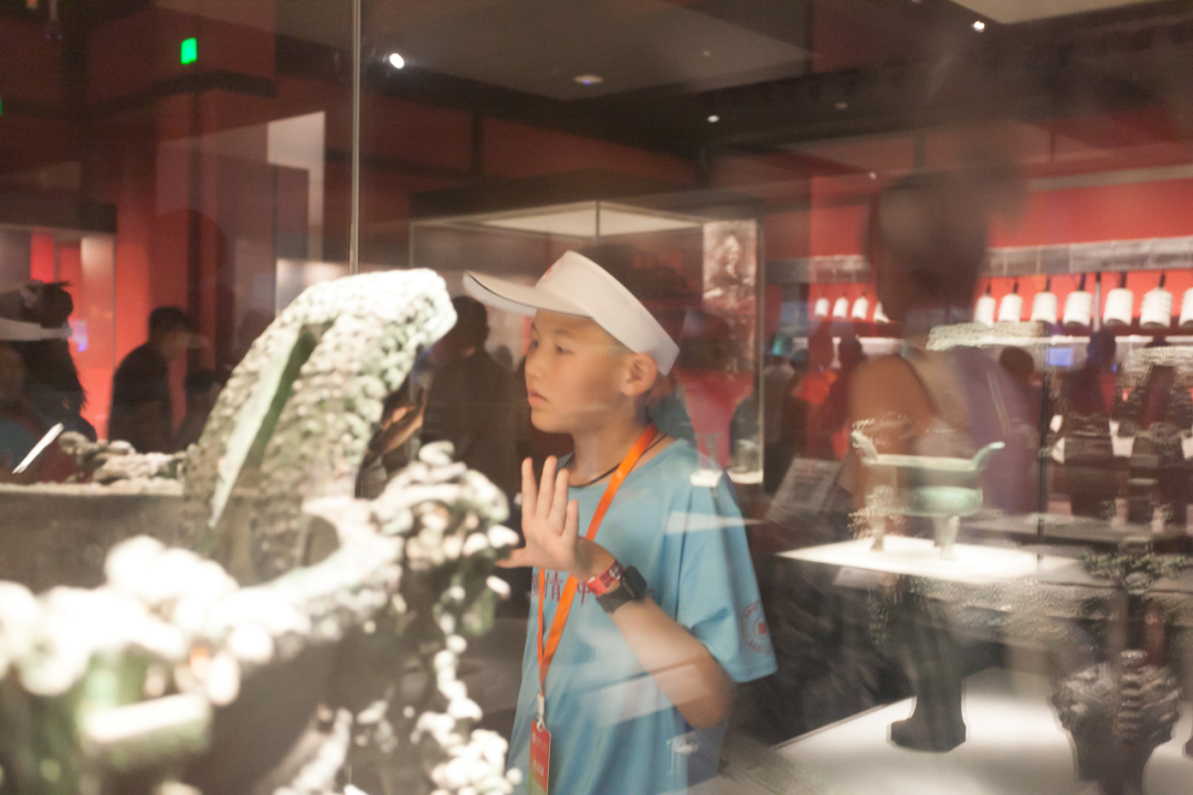 研学团的师生们先后赴郑州市、开封市、登封市参观学习。在郑州市,孩子们首先参观了河南博物院。这座承载着厚重中原历史文化的殿堂,犹如一座时光宝盒,向孩子们展示了华夏文明的灿烂与辉煌。在讲解员的带领下,大家逐一参观各个展厅,从原始社会的石器陶器,到商周时期的青铜重器,再到唐宋明清的书画瓷器,每一件展品都诉说着一段段动人的历史故事。孩子们时而驻足凝视,时而低声交流,沉浸在历史的长河中,感受着中华文化的博大精深。在河南科技馆,孩子们仿佛置身于一个充满科技魅力的奇幻世界,各种高科技展品和互动体验装置令人目不暇接,流连忘返。从基础科学原理到前沿科技成果,从航空航天到人工智能,孩子们通过亲身体验和操作,感受到了科技的力量和创新的魅力,激发了对科学探索的兴趣和热情。