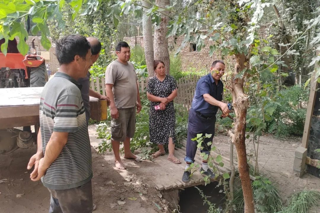 在尼萨克村,“五老”人员结合自身丰富经验,从提升果实品质、增加产量、增强抗逆性等方面,详细讲解桑葚品种改良的重要意义。同时,围绕桑葚嫁接技术要点,如接穗选择、嫁接时间、操作步骤及后期养护等方面进行细致传授。阿不都克里木·依明在现场进行实操演示,手把手指导嫁接操作,有效促进了种植户技能提升。“五老”人员还深入农户家中走访,宣传美丽家园建设的相关政策和重要意义,倡导大家积极参与环境整治、垃圾分类、庭院美化等工作,共同营造整洁、优美、和谐的居住环境。