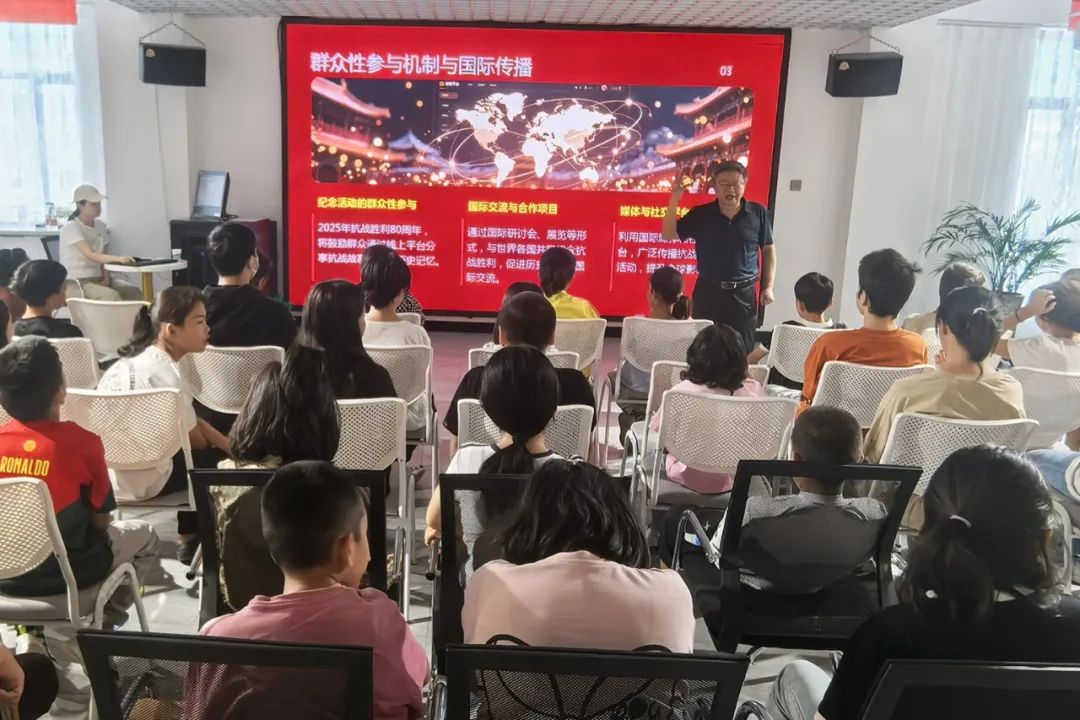 市关工委宣讲团团长付小芳结合生动的历史故事与珍贵的史料片段,向青少年们讲述了抗战时期无数先烈挺身而出、浴血奋战的英雄事迹,从战火纷飞的峥嵘岁月讲到如今国家的繁荣发展,让青少年们直观感受到革命先辈的爱国情怀与不屈精神。
