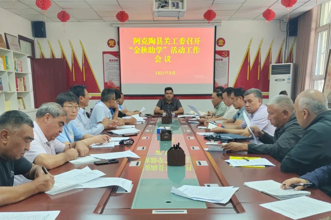 近日,阿克陶县关工委召开2025年度“金秋助学”活动工作部署会议,专题研究部署本年度助学帮扶工作。县委组织部副部长、关工委副主任迪力木拉提·阿布拉江等领导参加会议。