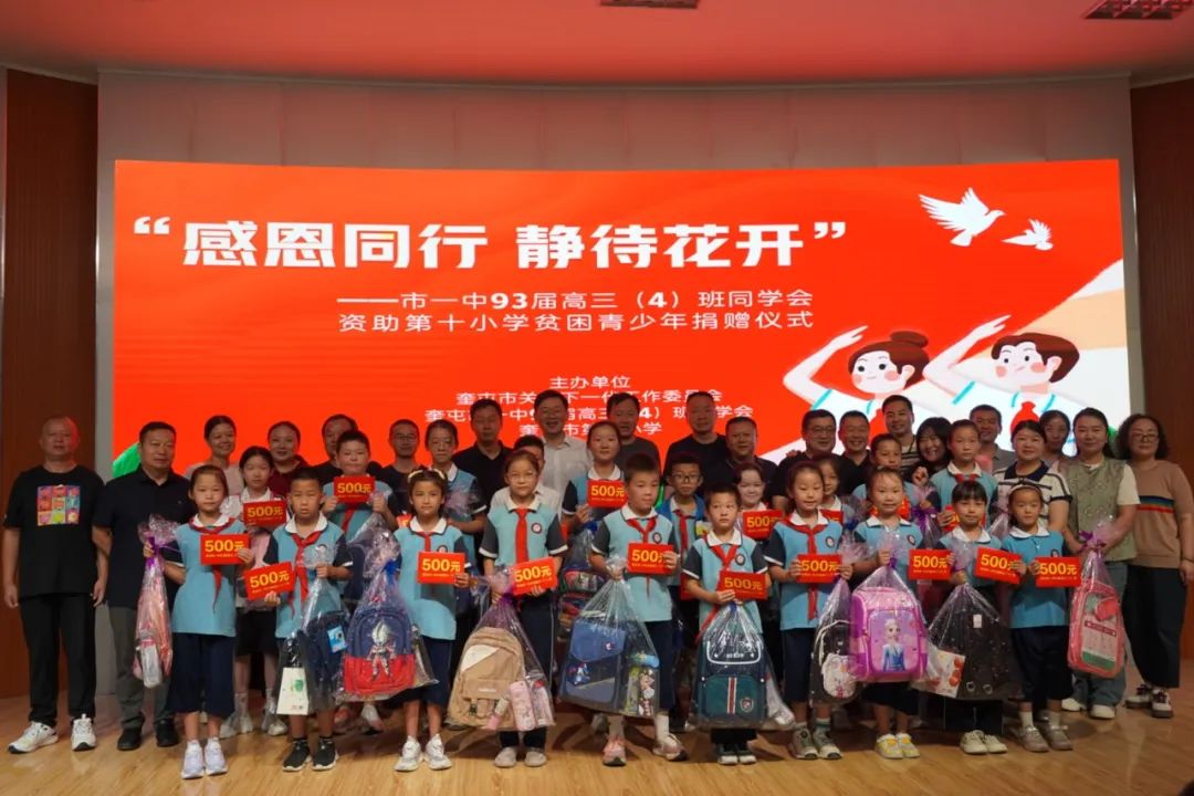 近日,奎屯市关工委联合市一中93届高三(4)班同学会,在市第十小学举行“感恩同行·静待花开”助学献爱心活动,为20名家庭经济困难学生送去温暖与希望。市关工委常务副主任张玲参加活动并讲话。