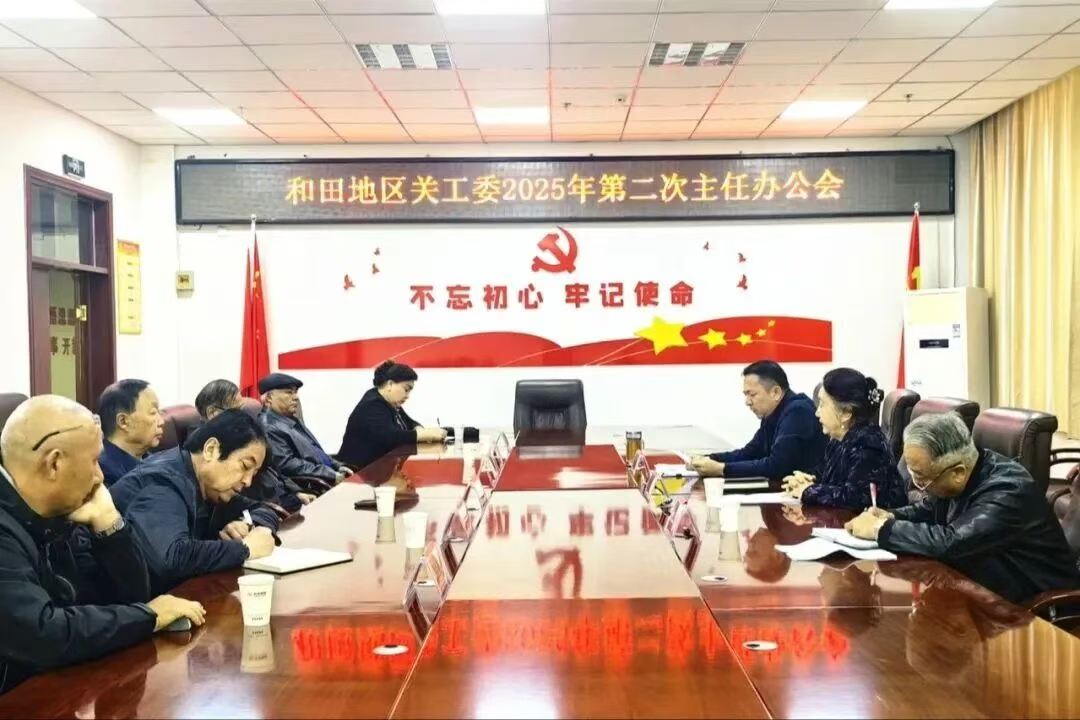 和田地区关工委召开主任办公会议。会议强调,要以新时代党的治疆方略为根本遵循,进一步强化政治引领,为新时代建设现代化新疆铸魂育人;要聚焦铸牢中华民族共同体意识主线,推进中华民族共同体建设;要结合工作实际,不断改进组织方式,组织各行业各领域的专家学者等“五老”深入到基层和青少年中去;要加强“五老”队伍建设,坚持发挥“五老”优势作用;要加强党的领导,进一步建立健全党委统一领导、党政齐抓共管、关工委主动作为、有关部门积极配合、社会各界广泛参与的工作机制。