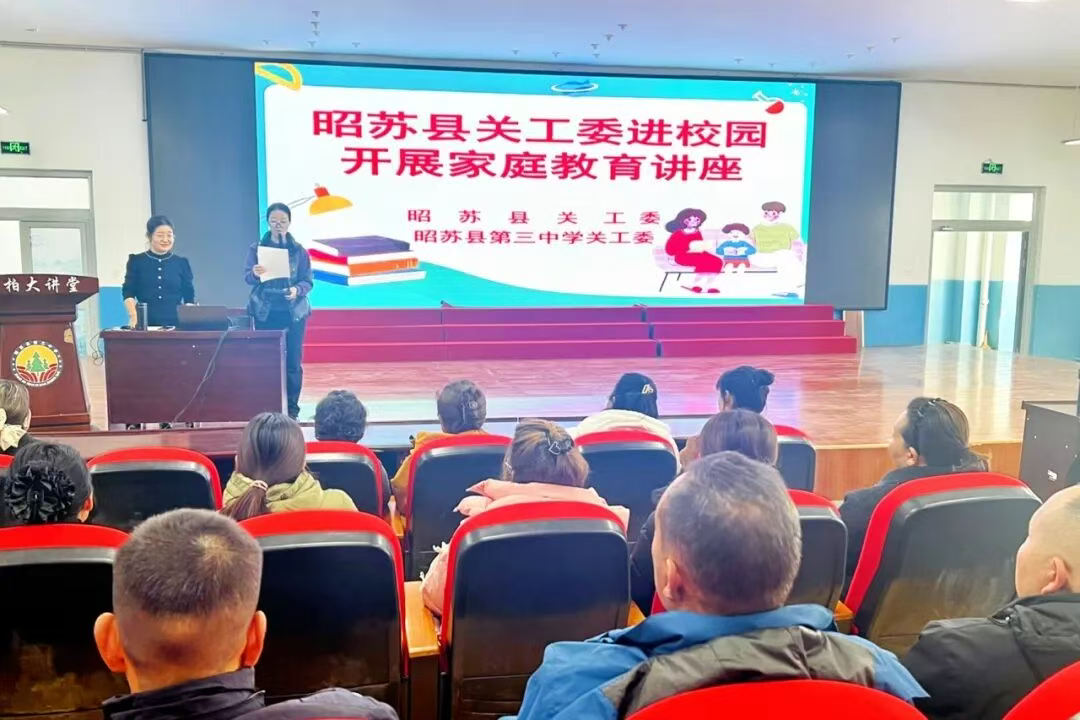 近日,昭苏县关工委在县第三中学、第四中学开展家庭教育宣讲活动,400余名家长参加活动。