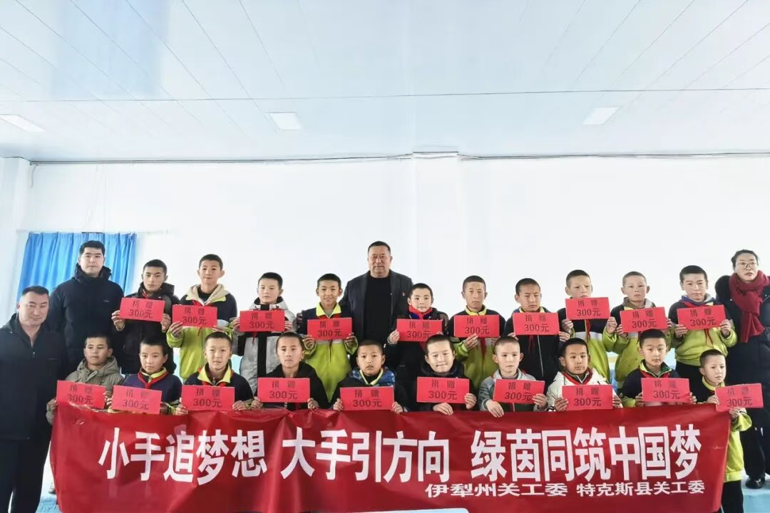 近日,特克斯县关工委走进乔拉克铁热克镇萨尔阔布村小学,开展“小手追梦想 大手引方向 绿茵同筑中国梦”主题活动,为该校“飞虎”足球队的队员们发放了由伊犁州关工委提供的6000元资助金,帮助学生们解决学习生活中的实际困难。