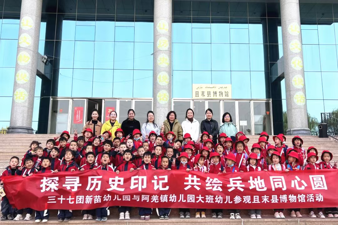 近日,且末县关工委联合第二师三十七团新苗幼儿园、阿羌镇幼儿园,开展“探寻历史印记·共绘兵地同心圆”研学活动。