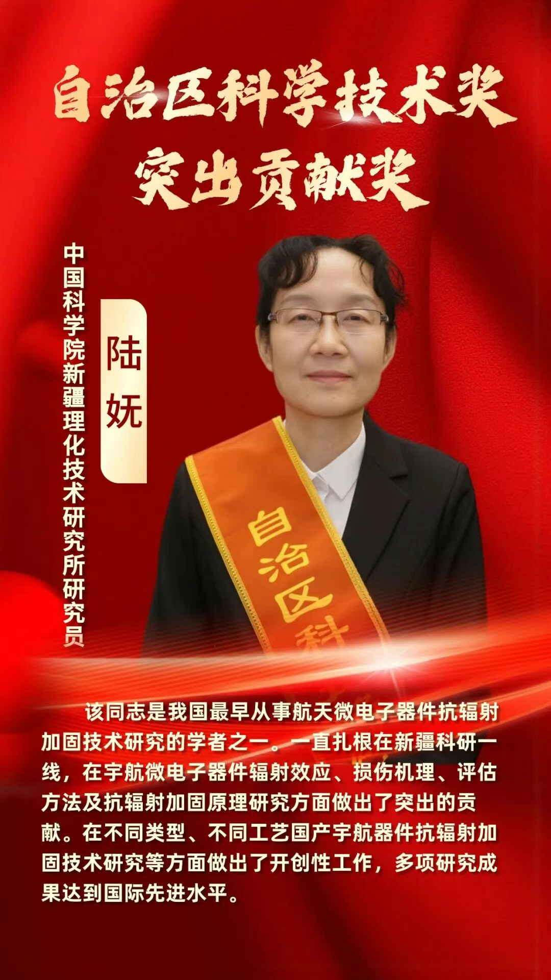 陆妩,除了图片中展示的成就,其中,模拟电路空间低剂量率损伤增强效应的损伤机理、快速鉴别及加速评估方法等成果达到国际领先。研究成果应用于我国“东方红”、“北斗”、“空间站”、“天问一号”、“探月工程”等航天重要型号工程和国产加固器件研制与评估,为提升我国宇航器件试验评估能力,实现宇航器件国产化自主可控做出重大贡献。