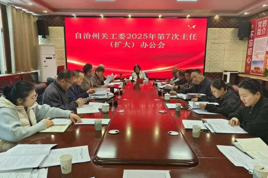阿克苏地区关工委召开2025年第四季度主任办公会议。会议指出,学习好、宣传好、贯彻好党的二十届四中全会精神是当前和今后一个时期的重大政治任务。各级关工委组织要按照自治区党委、地委的统一安排部署,通过原原本本学、集中宣讲学、党组织日常学、线上线下学、发挥作用学等形式,认真做好广大“五老”学习宣传贯彻四中全会精神工作,形成浓厚氛围。(高冰 段世鹏)