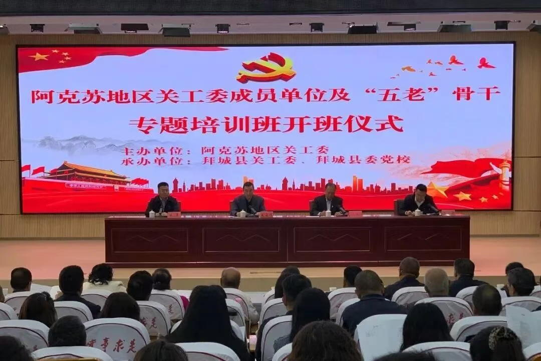 阿克苏地区关工委以提高组织力为重点,突出政治功能,以党建带关建,把基层关工委建设得更强更优。一是健全基本组织。积极构建县(市)、乡镇(街道)、村(社区)、学校和企业“五位一体”的关工委组织架构,形成横向到边,纵向到底的工作体系,建立2643个基层关工委组织,创建37个“五好”关工委组织,打造27个“五老”工作室。2023年9月召开全地区基层关工委组织规范化建设推进会,对各行业、各领域基层关工委的职责任务、工作制度、内容标准等方面进行了规范。2024年9月组织县市关工委和成员单位召开地区关工委工作推进会,推动关工委组织建设重点工作落地落实。二是建强基本队伍。落实常态化退出和补充机制,分行业、分类别、分层级对2.4万名“五老”人员分类摸底,登记造册,建立了2643人的“五老”骨干人才库,并结合不同特长分别组建了“五老”红色宣讲团、助困关爱团、法治工作团等。采取集体培训、专题研讨、座谈交流等形式,组织各级关工委成员和“五老”到兄弟地州市和其他省市区开展参观学习和考察调研,进一步开拓视野,更新理念。在春节、古尔邦节、重阳节等传统节日,地县两级关工委组织对“五老”进行看望慰问。35年来,阿克苏地区涌现出一批“五老”先进典型,王宝厚、王金山、程克美等同志先后荣获“全国关心下一代工作先进工作者”“全国青少年普法教育优秀辅导员”称号。三是强化基本保障。地委分管领导专门召开关工委基础保障工作协调会,统筹解决县(市)关工委机构设置、办公场所、工作人员、活动开展、经费保障和工作用车等实际困难和问题,实现了有机构管事、有人员干事、有经费做事、有阵地办事。
