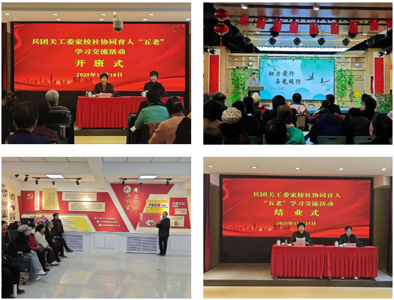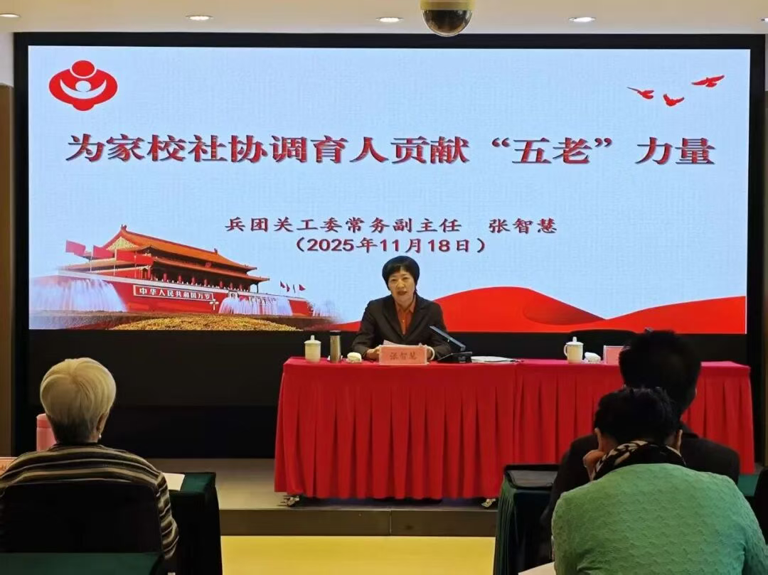 11月18日至21日,兵团关工委家校社协同育人“五老”学习交流活动在兵团干部学院举办。此次活动旨在深入学习贯彻习近平总书记关于注重家庭家教家风建设的重要论述和关心下一代工作的重要指示批示精神,学习青少年心理健康、家庭教育指导、家教家风建设等相关知识,搭建交流经验、共享智慧的平台,进一步提升“五老”的育人能力和服务水平,推动兵团关心下一代工作高质量发展。
