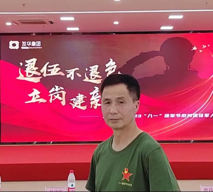 后来,外公退伍了,但退伍不褪色。他穿着印着“八一建军节纪念”的绿色T恤,在企业组织的“退伍不褪色 在岗建新功”活动中,依然以军人和党员的标准严格要求自己,这种精神也感染着身边的年轻人,鼓励他们在共青团的引领下,在各自岗位上发光发热。