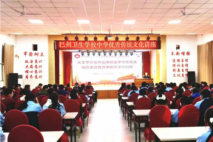 近日,巴州关工委组织宣讲团讲师赴巴州卫生学校,开展“中华传统文化在家庭教育中的传承与创新”专题宣讲活动,200余名学生聆听讲座。