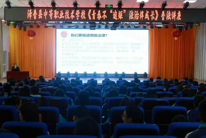 近日,泽普县人民检察院关工委走进县中等职业技术学校,开展“青春不逾矩,法治伴成长”主题宣讲活动,为在校800余名师生带来一堂生动而深刻的法治教育课。