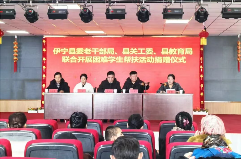 近日,伊宁县委老干部局、县关工委、县教育局联合举办困难学生帮扶活动捐赠仪式。