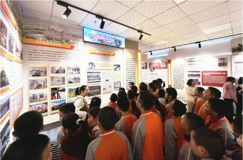 近日,布尔津县关工委组织神仙湾路小学49名学生,走进县老干部服务中心《银龄生辉 赓续荣光》百年印记展厅,开展思想政治实践教育活动。