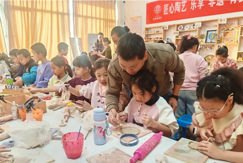 老师采用“示范教学+自主创作”的模式,让孩子们充分发挥想象力,他们有的将陶泥捏成圆润的饺子,有的塑出小巧的汤圆摆件,还有的将冬至元素与现代审美结合,制作出独具个性的陶艺作品。
