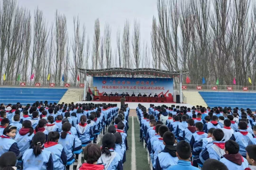 12月23日,由自治区关工委和阿克苏地区关工委联合主办的“冬日暖阳·护航成长”青少年关爱专项活动在乌什县依麻木镇国通语学校正式启动。自治区关工委常务副主任巴代出席启动仪式并讲话,副主任杜鲁坤·托乎提,阿克苏地委委员、组织部部长张勇,地区关工委、卫健委、教育工会,乌什县委、政府有关领导同志参加活动。
