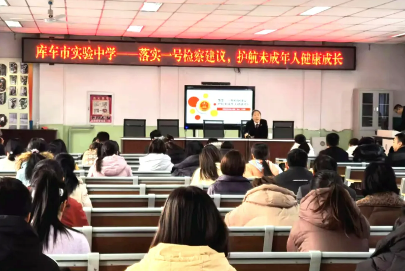 近日,库车市人民检察院关工委检察官柴霞走进市实验中学,面向全体教职工开展“一号检察建议、强制报告制度”专项法治宣讲活动。