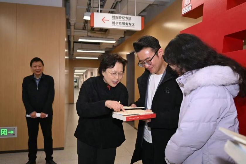 在平台企业家政培训中心,黄晓薇与家政从业者深入剖析行业发展难点痛点,鼓励企业精准对接养老育幼需求,不仅用力更要用心用情做好家政服务,擦亮巾帼家政品牌。在婚登婚检“一站式”服务大厅,黄晓薇为工作人员提供的高效便捷暖心服务点赞,向前来登记的新人送上祝福,勉励他们践行新型婚育文化,弘扬家庭文明新风,以“小家”之美为“大家”添彩,共创中国式现代化美好未来。