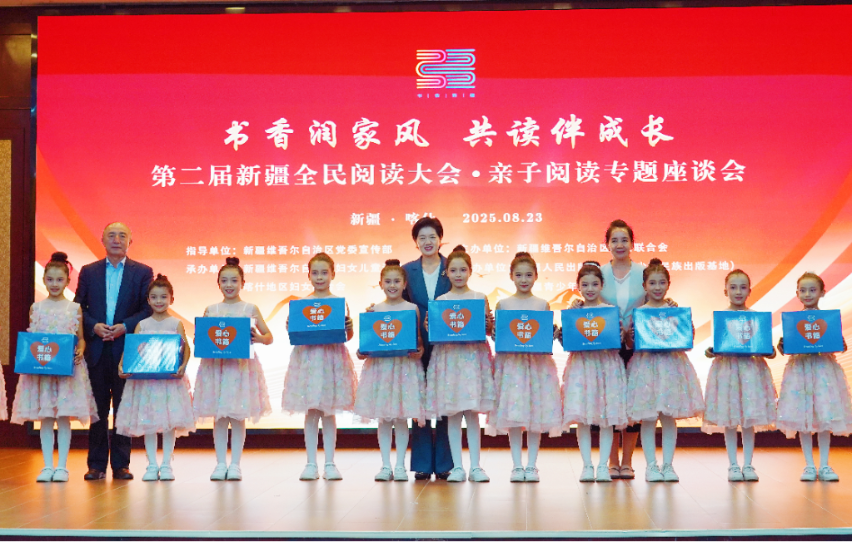 《问书》环节,知名作家毕然、罗定权分别以《用经典作品塑造家庭的“精神基因”》《在阅读中找到更辽阔的世界》为题发表主旨演讲,并与读者深度互动。《听书》环节,“爱心妈妈”毛晓彤、基层工作者张宏分别以《石榴妈妈》《微光成炬》为题分享推广“全民阅读”工作的感人故事和经验成效。春蕾女童代表布海地且·吾布力和赛丽麦·阿布都外力共同诵读《春蕾的回声》,深情表达对爱心人士的感谢敬意。《读书》环节,喀什地区书香家庭代表、“家规家训亮家风”活动优秀家庭代表共同带来穿越舞台剧《AI里的中国》。《论书》环节,知名出版人及作家白冰、高校家庭教育工作专家殷飞、全国家庭亲子阅读推广大使林丹等围绕“亲子阅读与家风传承”主题进行交流探讨,为家庭答疑解惑,带领广大家庭儿童感悟亲子阅读之美,凝聚推动家庭亲子阅读、建设书香中国的共识。《种书》环节,塔城地区热孜万·买买提家庭、巴音郭楞蒙古自治州贾进杰家庭分享了阅读传家教树家风故事,揭晓了“种一颗热爱读书的种子——亲子阅读作品大赛”获奖名单,开展了中国儿童少年基金会“爱心书箱·书香中国”公益项目捐赠活动。